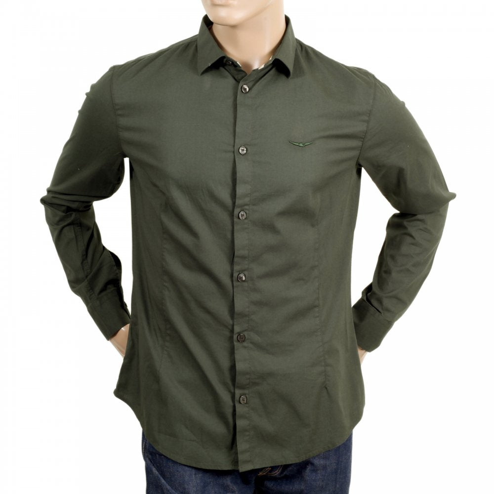 Mens Long Sleeve Green Stretch Cotton Slim Fit Shirt