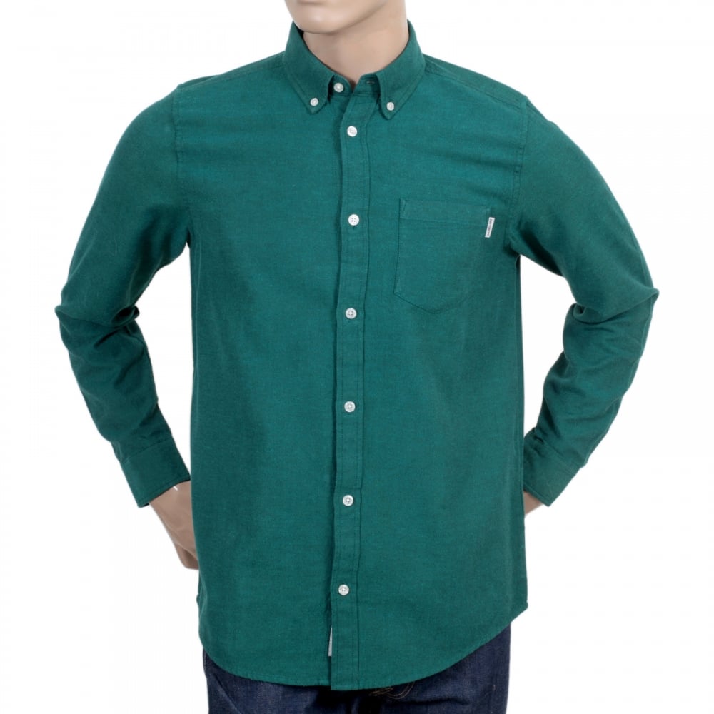 Mens Long Sleeve Solid Parsley Dalton Regular Fit Shirt with Single Chest Pocket and Pearlised Buttons