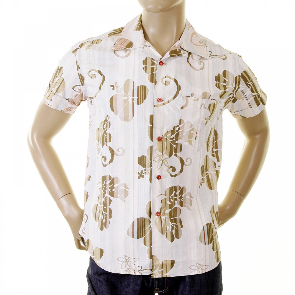 Early and Genuine Mens Short Sleeve Camel Floral Print Shirt
