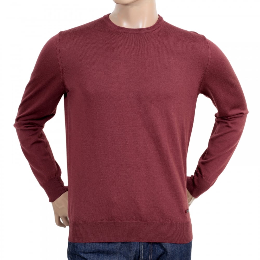 Mens Crew Neck Virgin Wool Made Knitwear in Terracotta with Ribbed Collar, Sleeve Cuffs and Waistband