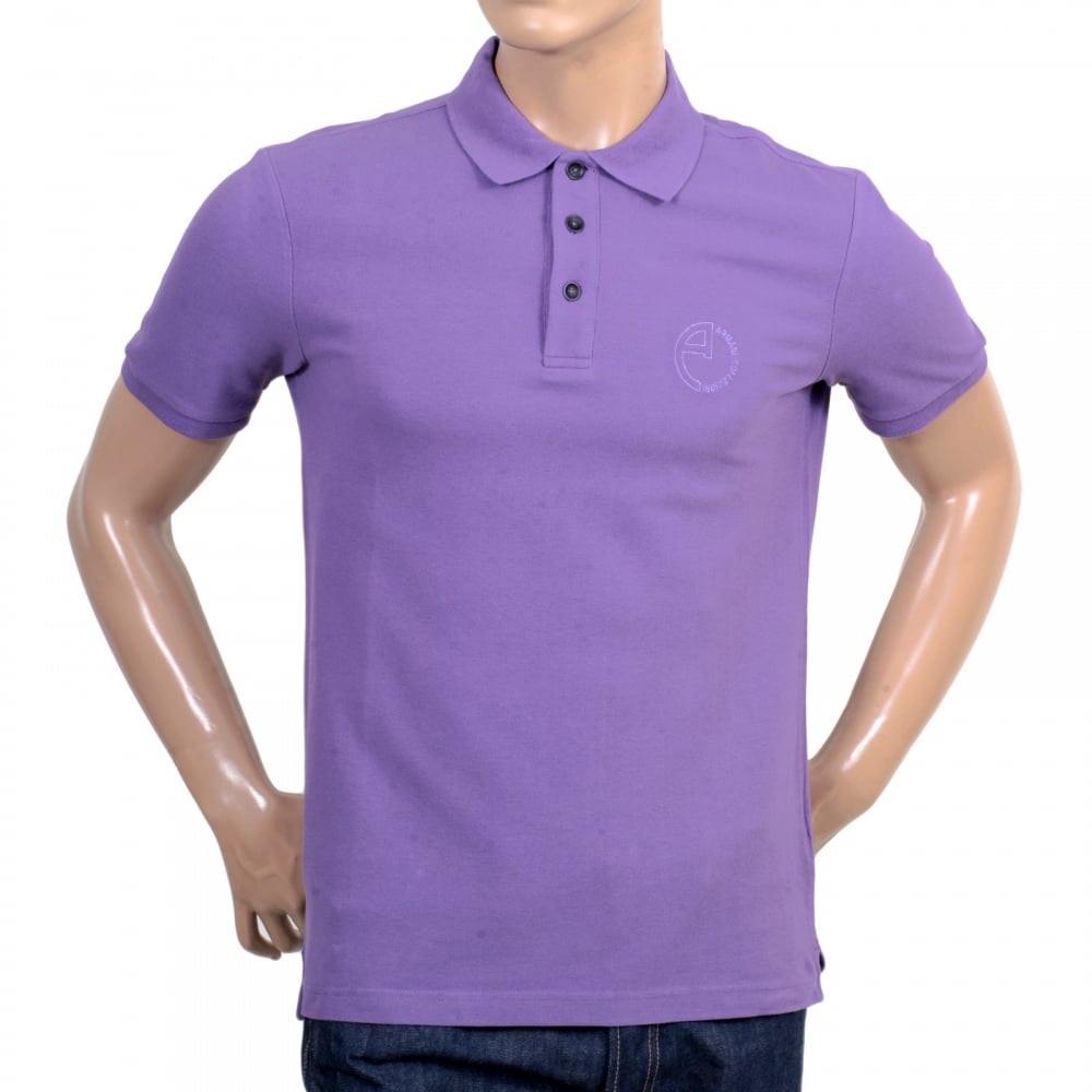 Short Sleeve Pique Violet Cotton Polo Shirt for Men with Three Button Design Ribbed Collar and Sleeve Cuffs