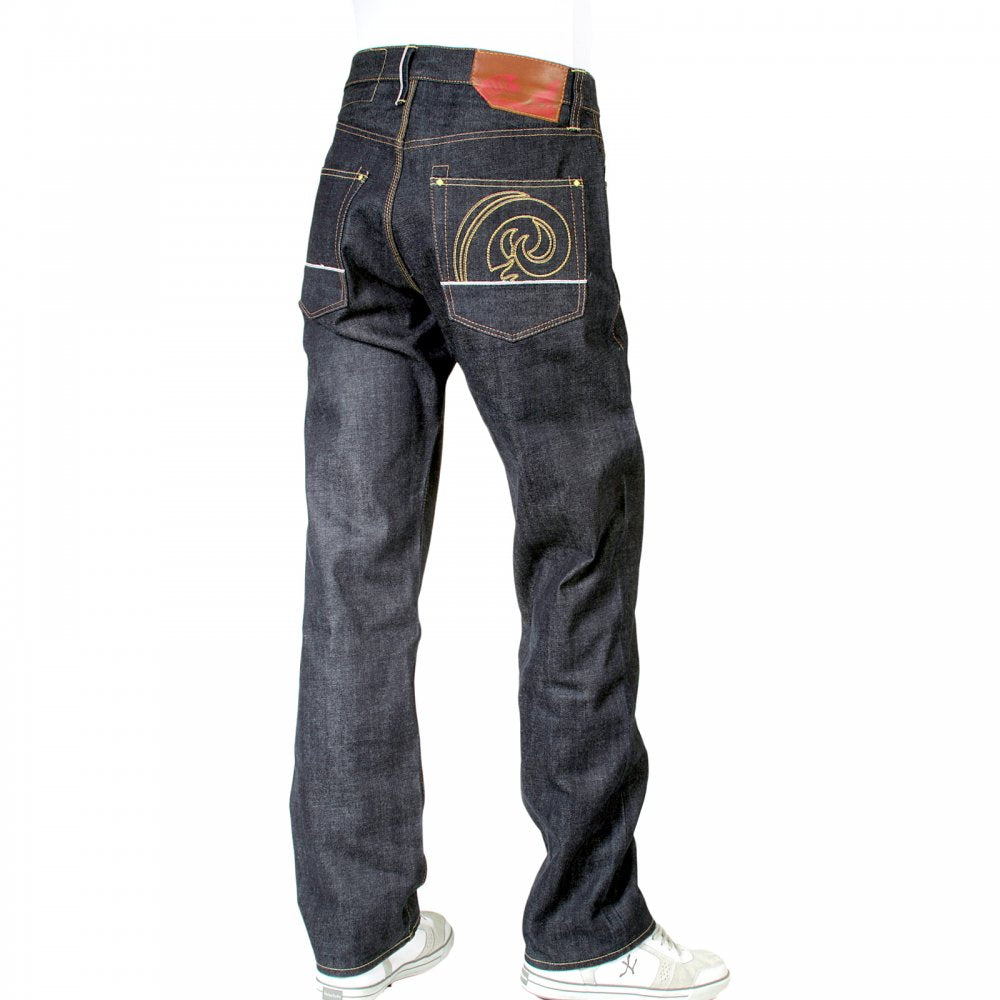 • Plain back pocket with selvedge trim