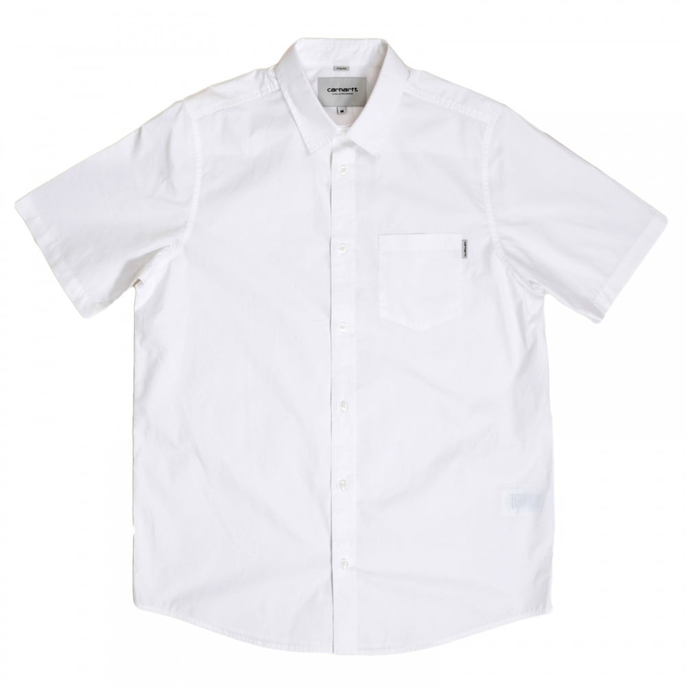 Mens Regular Fit Short Sleeve Button Down Collar White Wesley Shirt with Single Chest Pocket by Carhartt