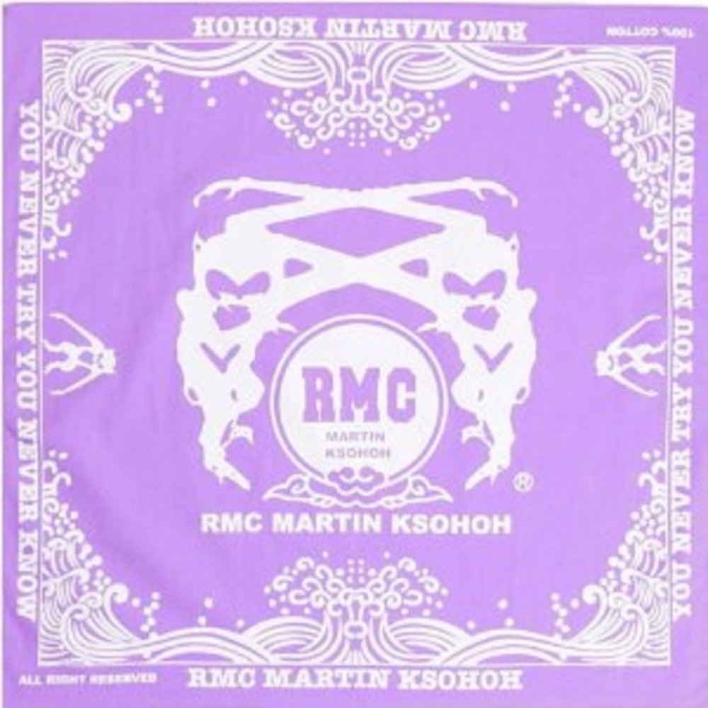 • Light purple bandana with printed RMC Martin