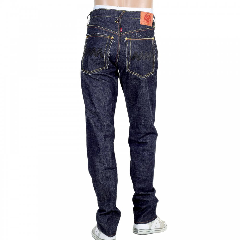 4A Version 1 Regular Classic Slim Model Selvedge Raw Denim Jeans with Black Embroidery
