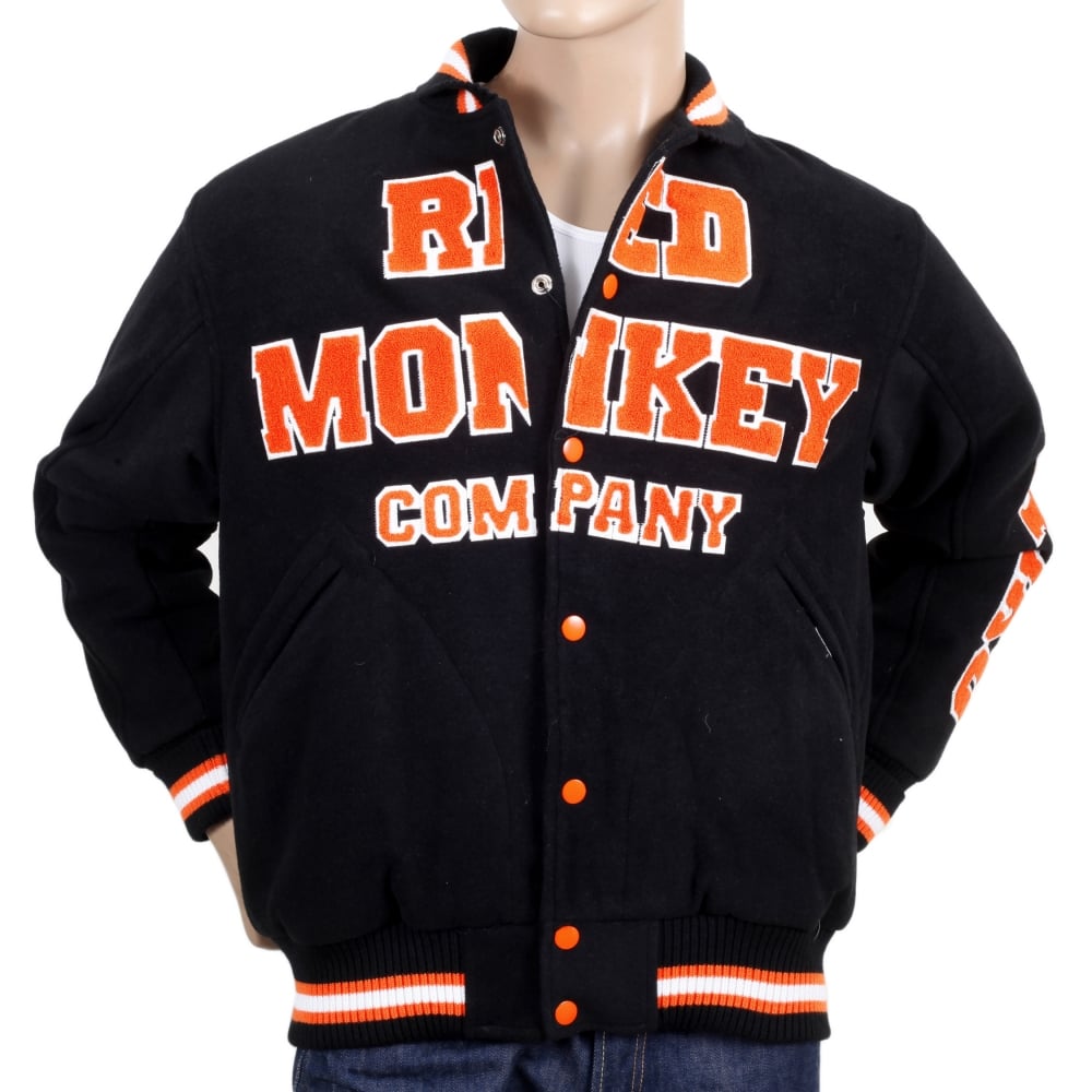 Black with Orange and White Regular Fit Varsity Baseball Jacket Mens
