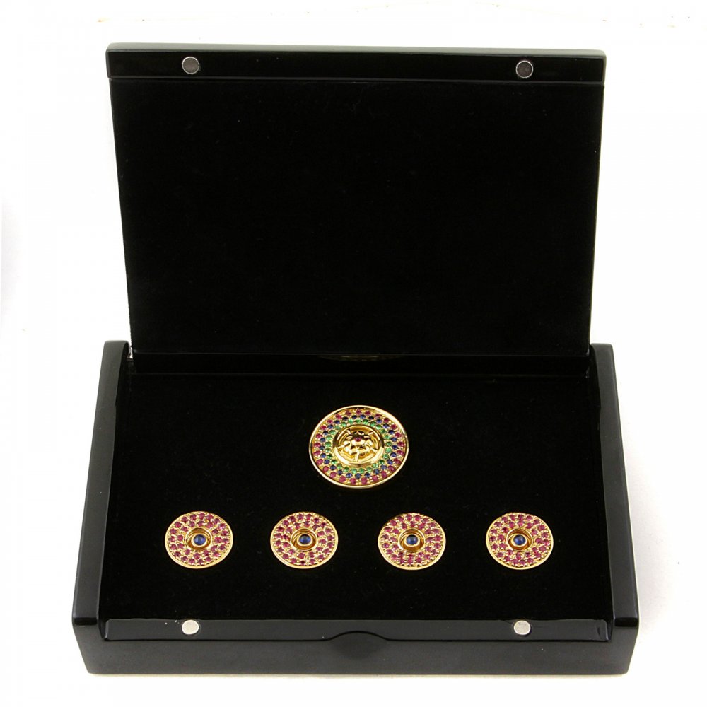 Custom Made Ruby and Blue Sapphire 5 Button Set
