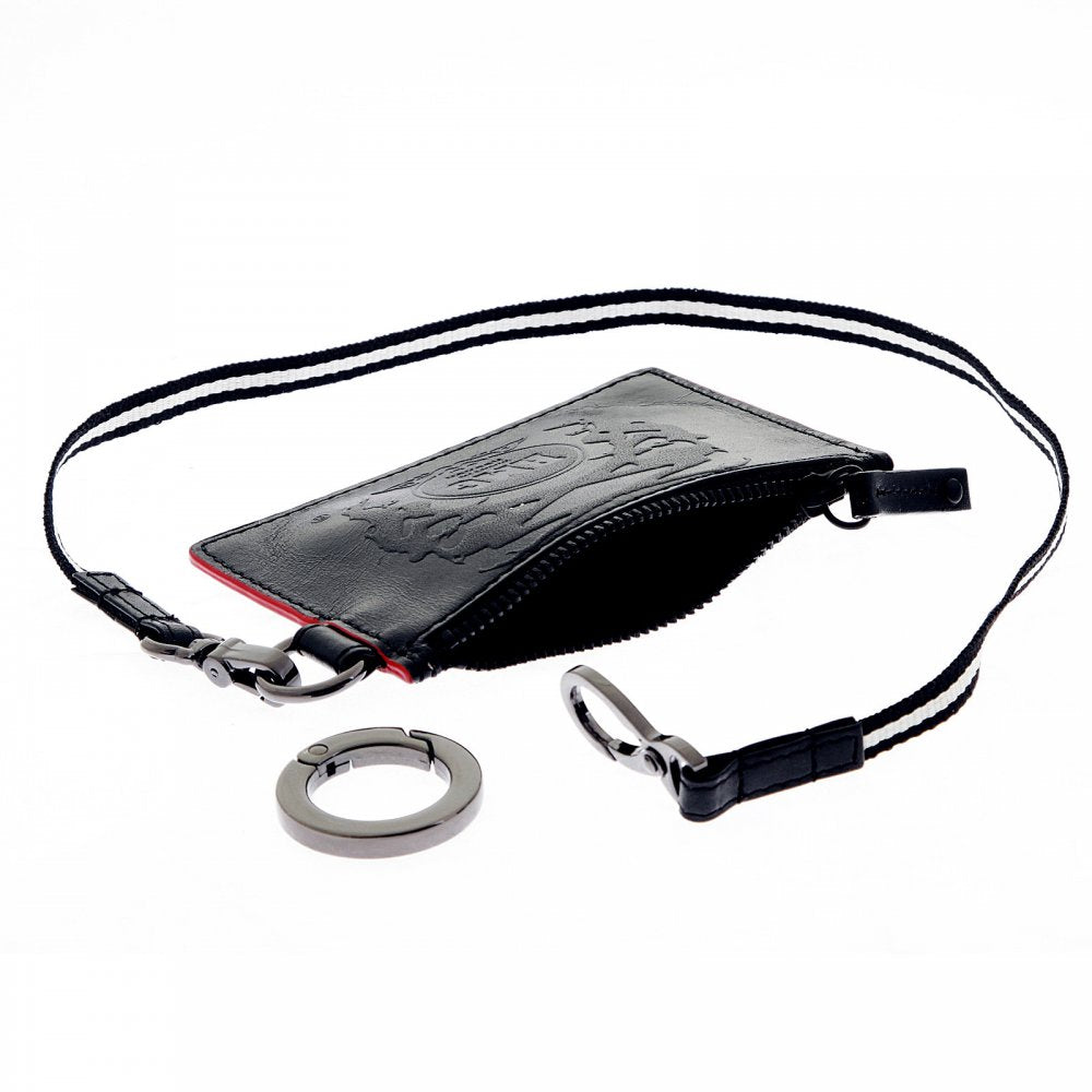 Mens Black Leather Pouch with Red Leather Trim