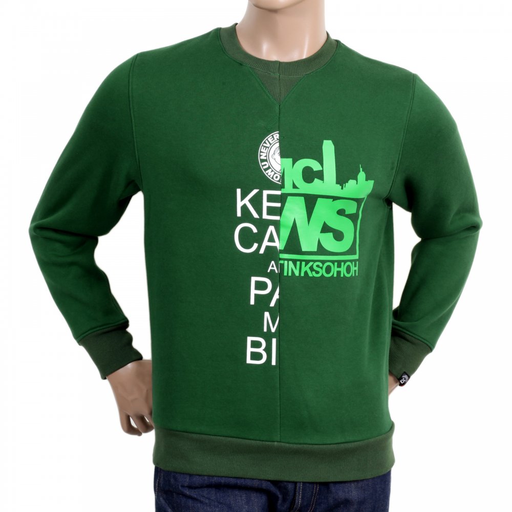 Mens Custom Made Green Crew Neck Cotton Sweatshirt with Mixed Printed Logo