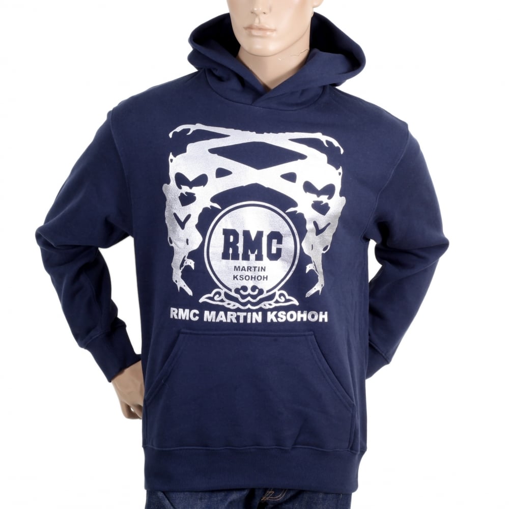 Navy Long Sleeve Sweatshirt Silver Logo Hoodie