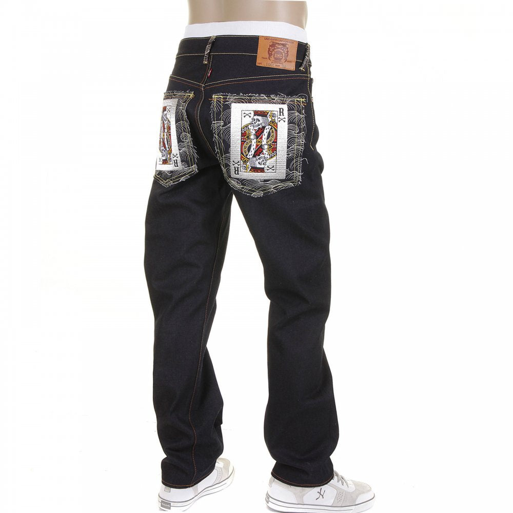 Slim Cut Dark Indigo Raw Denim Jeans with Super Exclusive Design