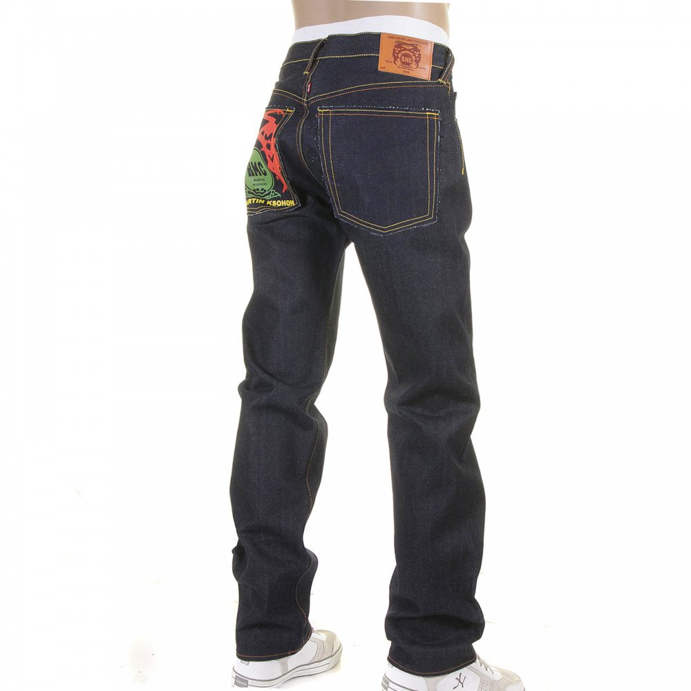 Tsunami Wave and Painted Logo Raw Selvedge Denim Jeans