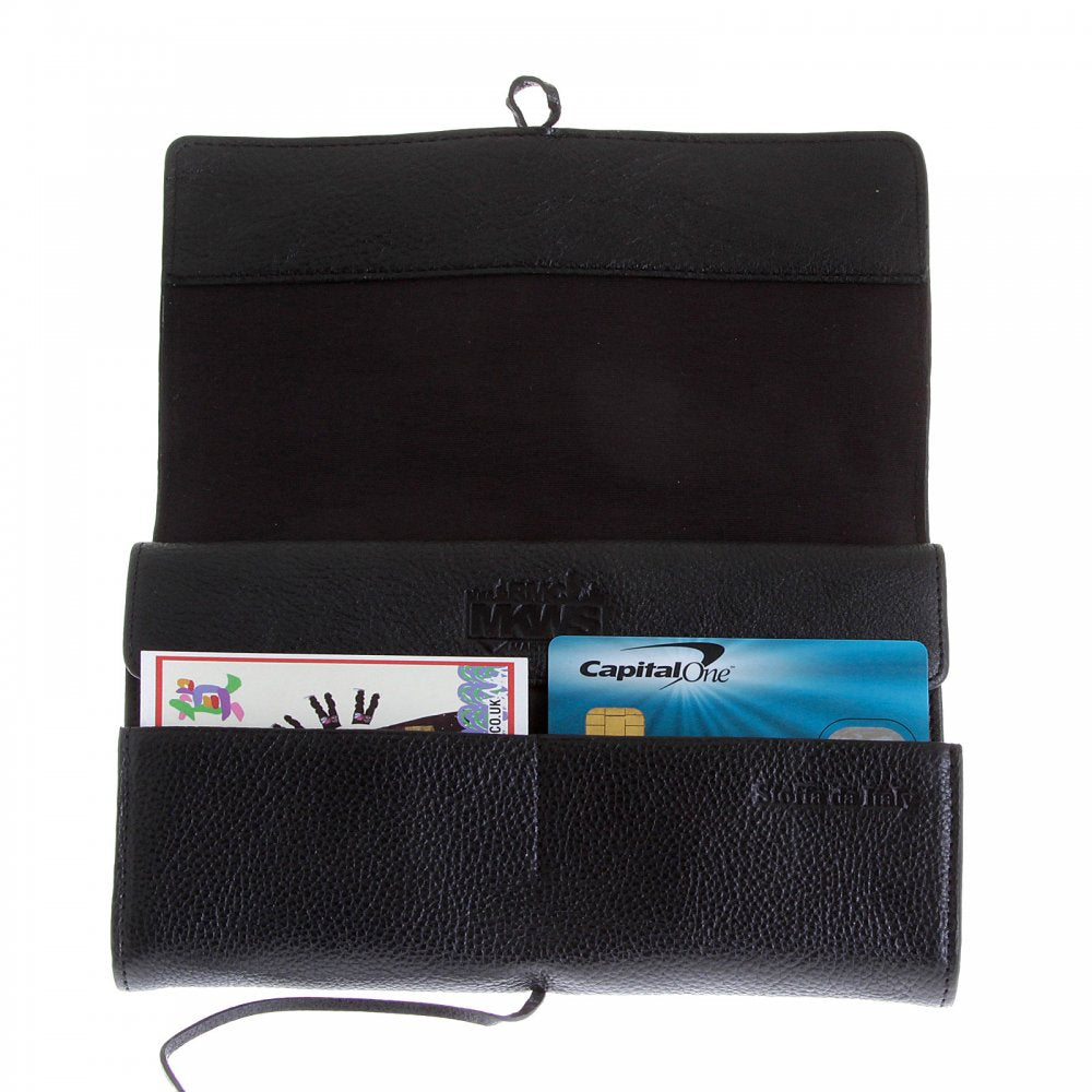 Unisex Black Grain Leather Travel Wallet with Shoe Lace Tie Closure