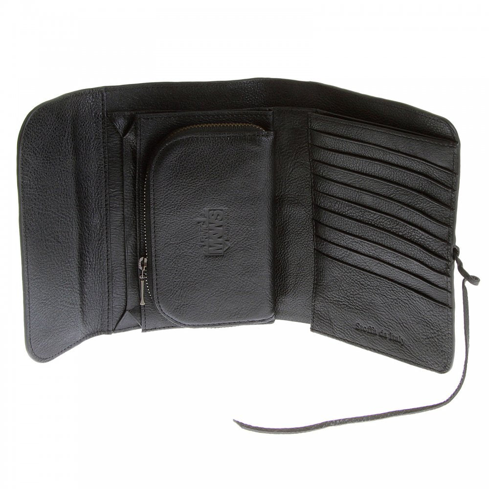 Unisex Black Leather Bill Fold Leather Wallet