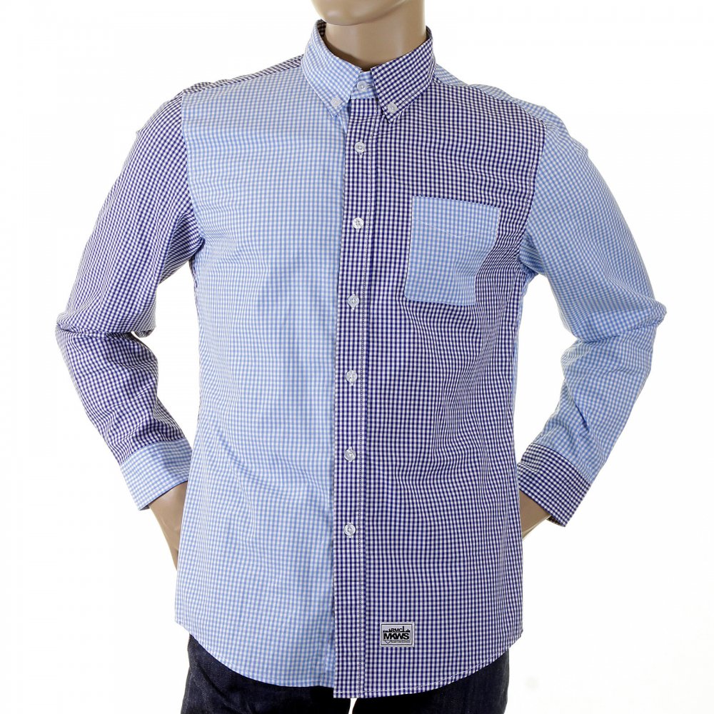 Blue and Navy Button down Collar Long Sleeve Regular Fit Shirt