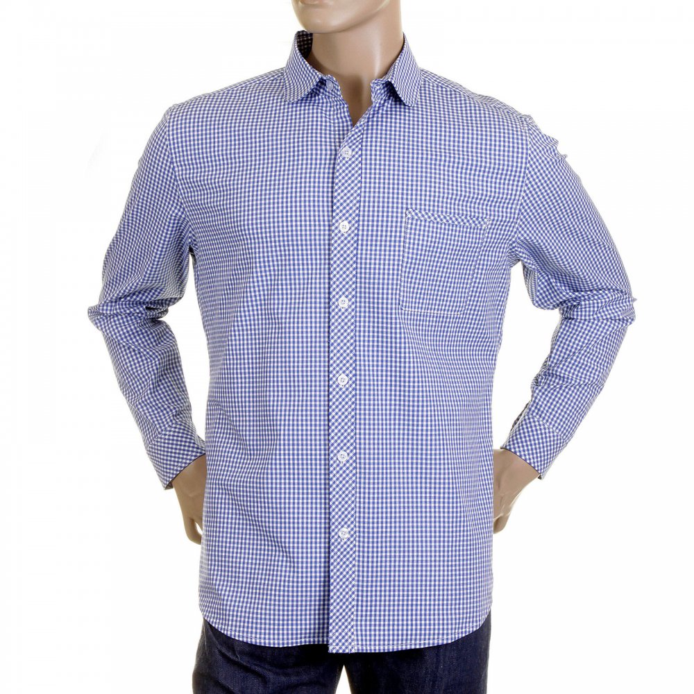 Mens Blue Check Soft Penny Collar Long Sleeve Regular Fit Shirt