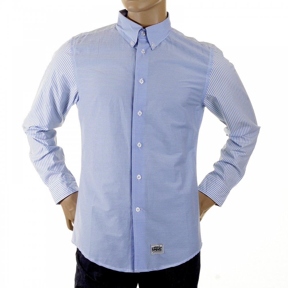 Mens Blue Striped Button Down Collar Long Sleeve Regular Fit Shirt