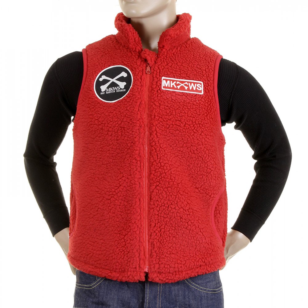 Mens Red Plush Fleece Zip Up Sleeveless Regular Fit Vest Gilet