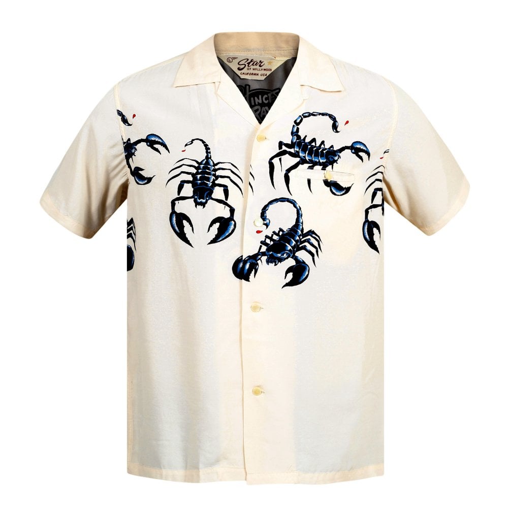 Mens Scorpion Vince Ray Star of Hollywood Off White Hawaiian Shirt