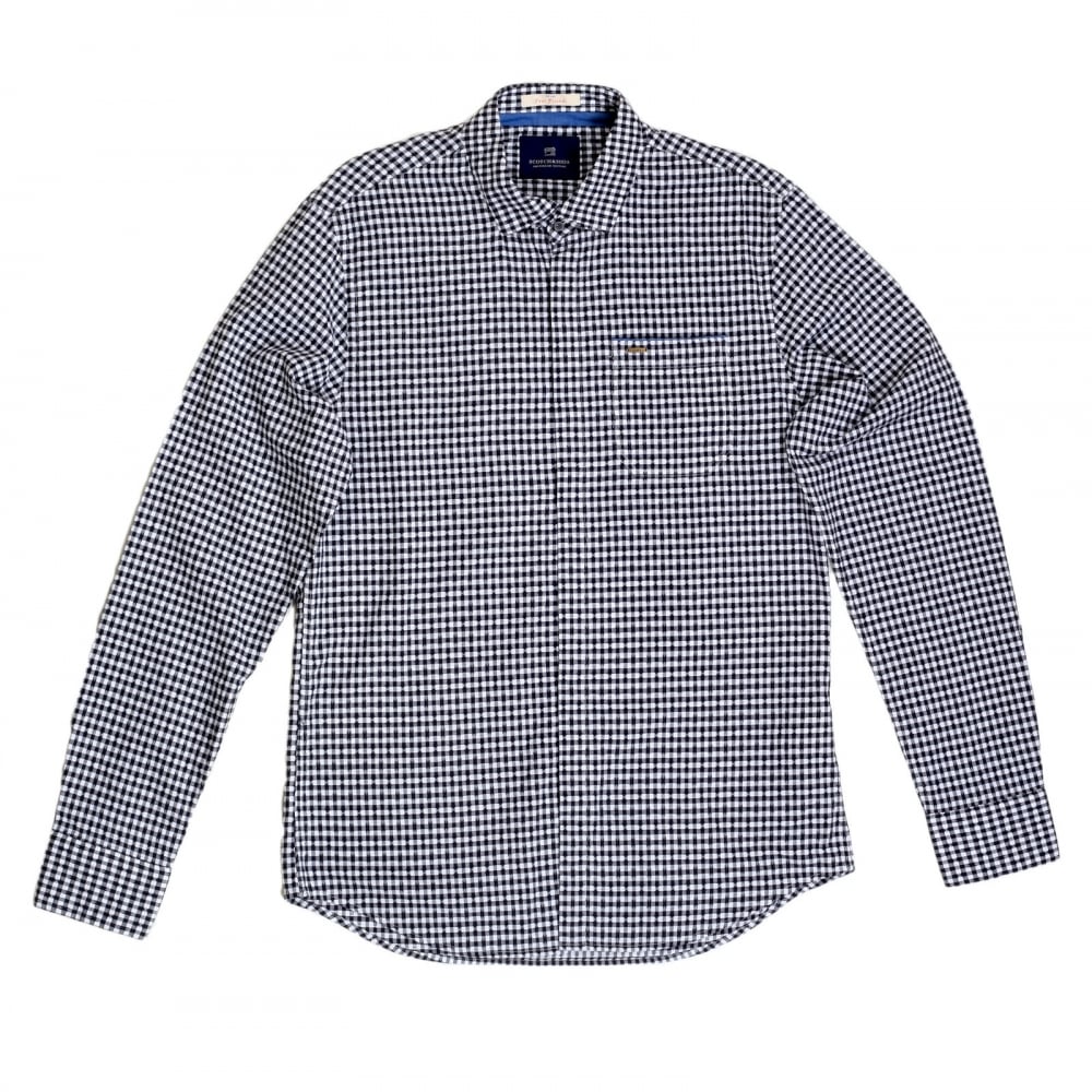 Mens Regular Fit Long Sleeve Black and White Semi Dogtooth Check Shirt for Men by Scotch and Soda
