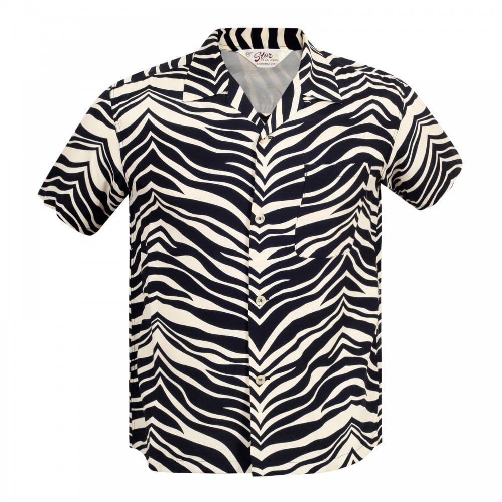 Star of Hollywood Black SH37879 Zebra Printed Rayon Hawaiian Shirt SoH8663