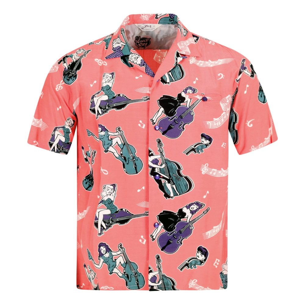 Star Of Hollywood Mens Red Double Bass Pinups Star of Hollywood Hawaiian Shirt SoH10092