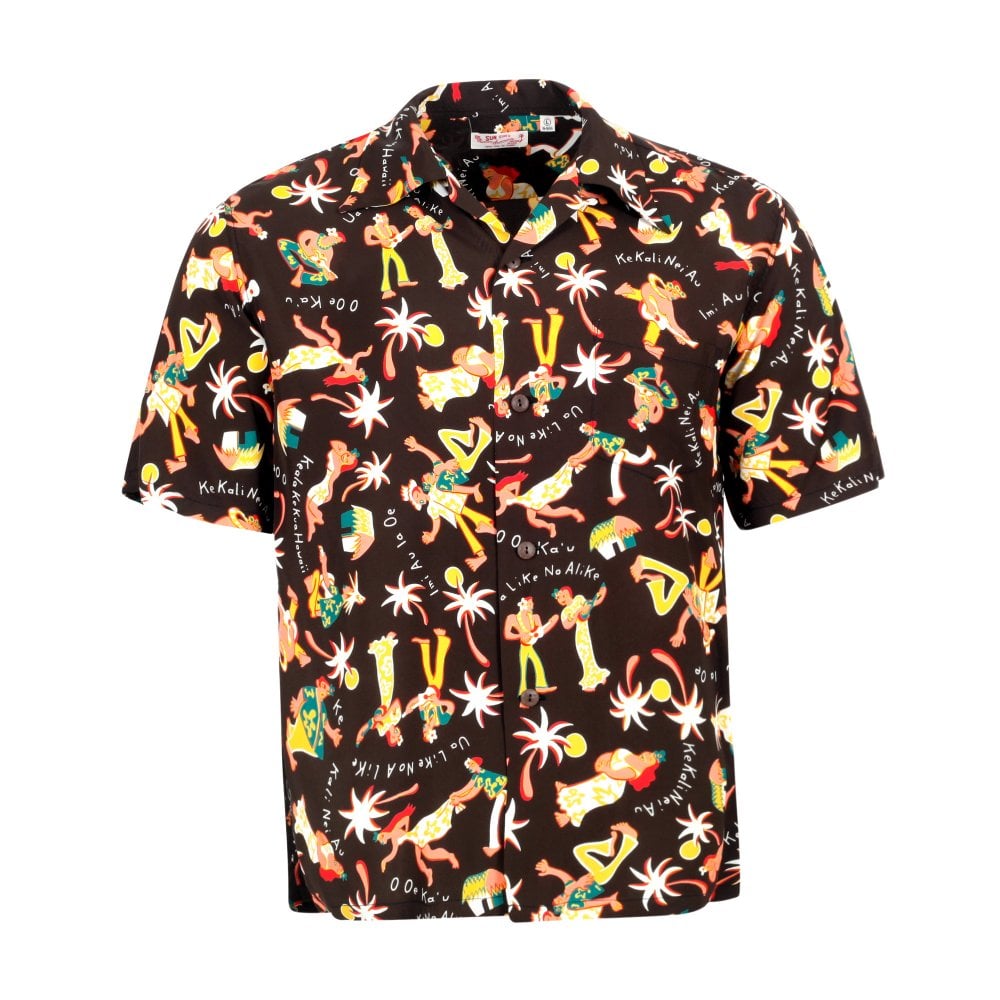 Sun Surf Mens Fun Island of Hawaii Dark Brown Black Hawaiian Shirt SURF10266