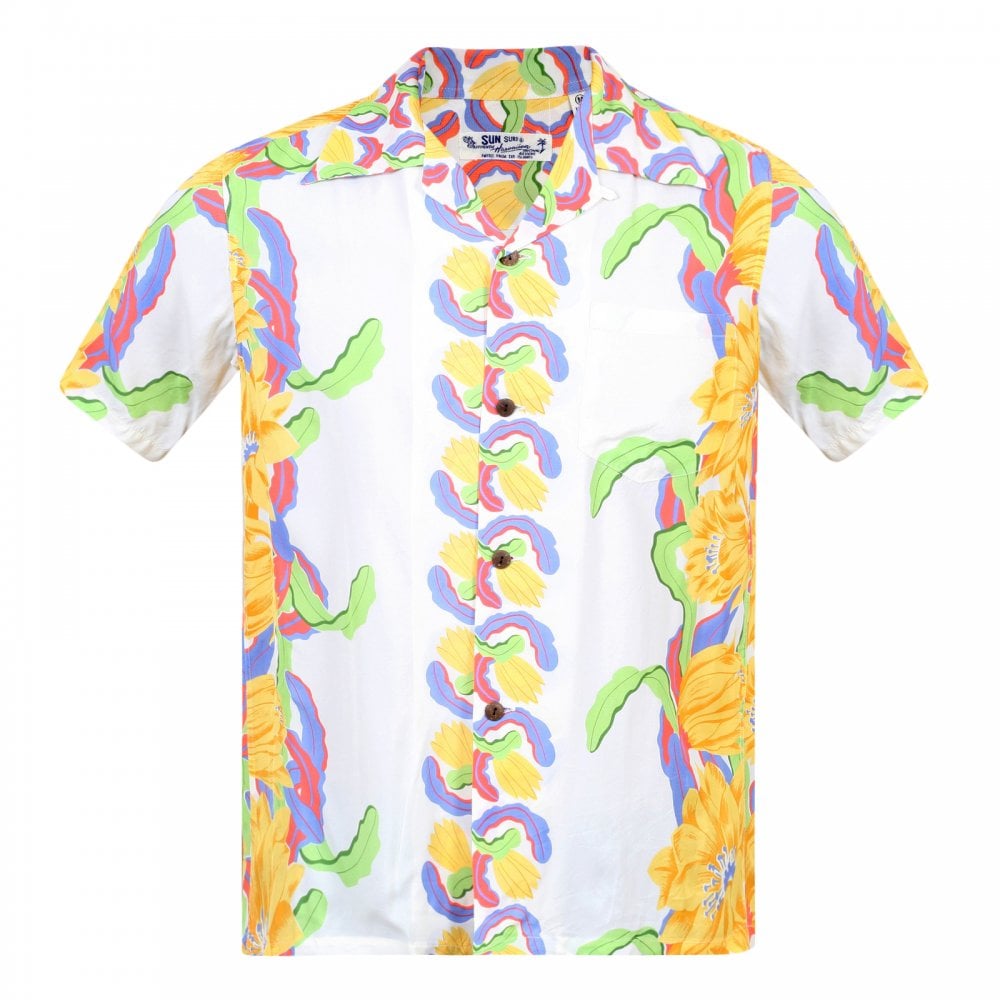 Sun Surf Night Blooming Cereus Border SS33876 White Short Sleeve Regular Fit Hawaiian Shirt for Men