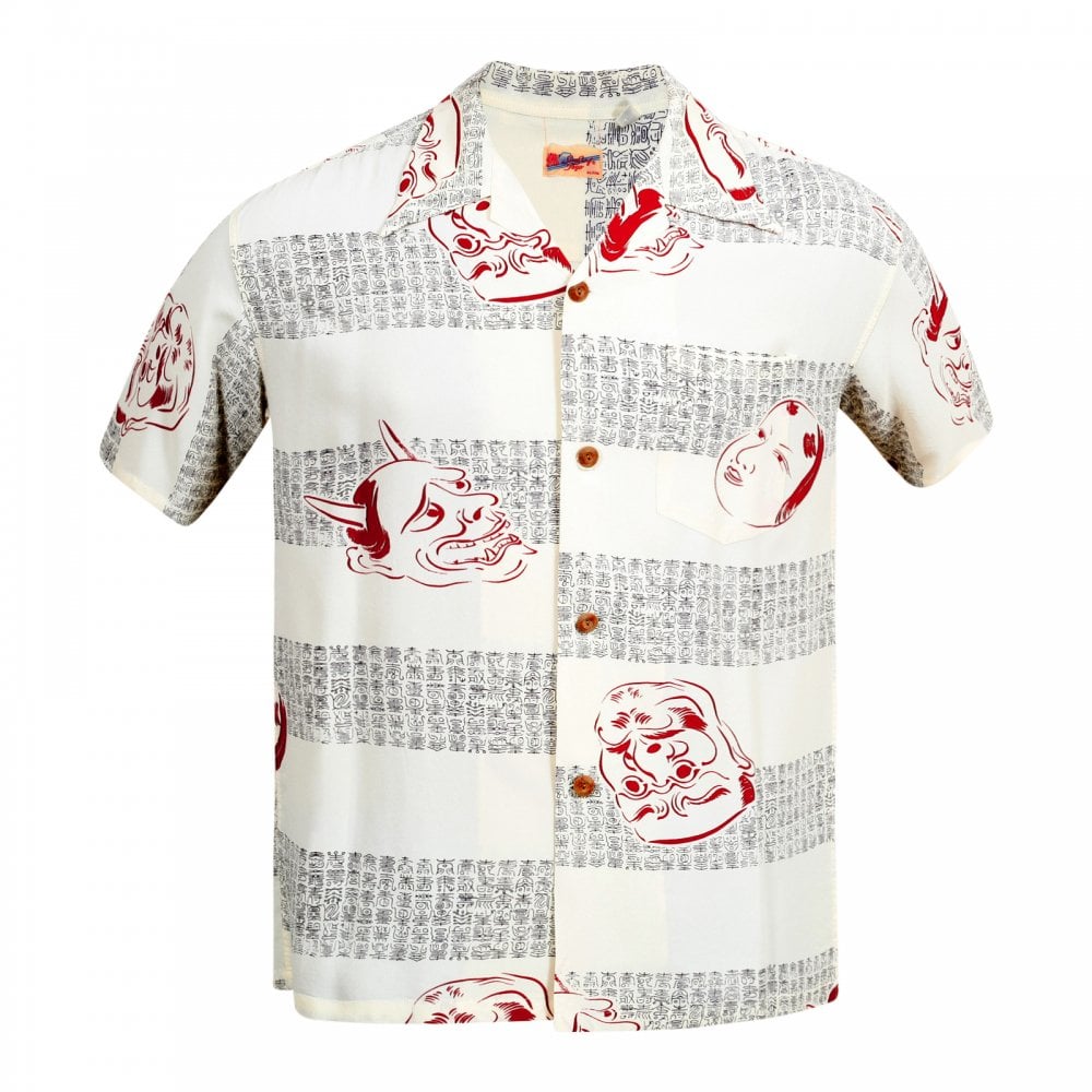 Sun Surf Off-White Rayon SS37790 Mens Regular Fit Short Sleeve Hawaiian Shirt with Noh-Men Print