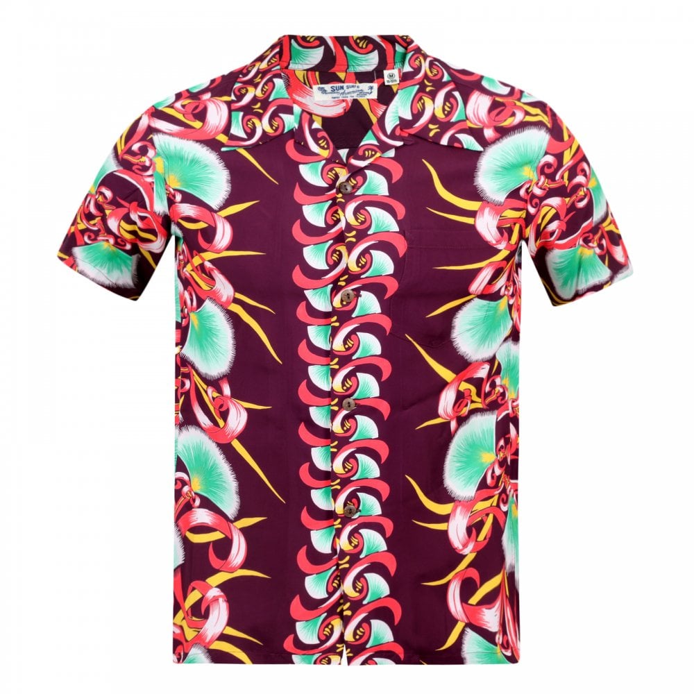 Sun Surf Wine Rayon Short Sleeve SS37793 Regular Fit Mens Hawaiian Shirt with Aloha Bombax Tree Print