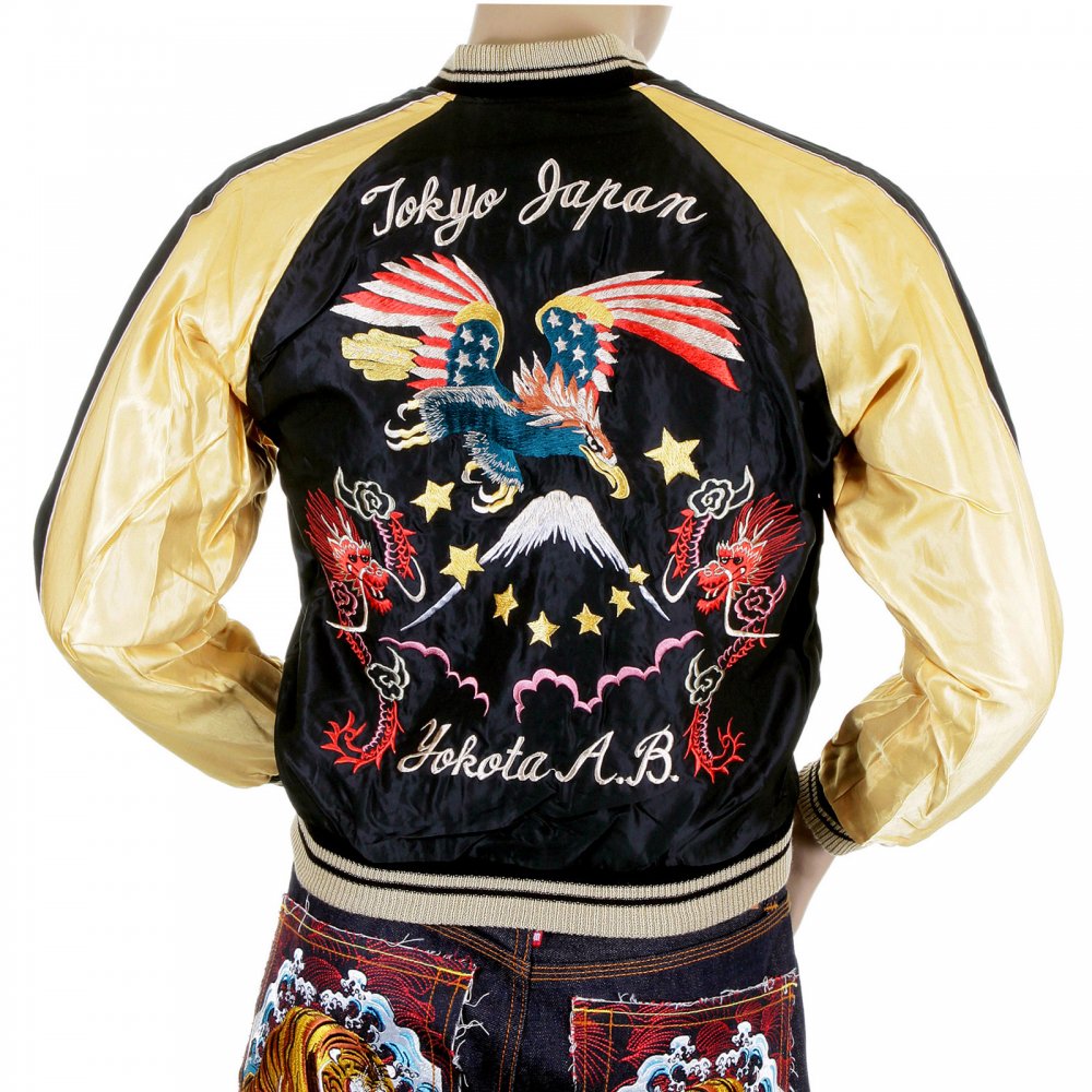Black Body Gold Colour Sleeves Fully Reversible Souvenier Suka Jacket With Hand Embroidered USA Eagle Yokota AB TT11781
