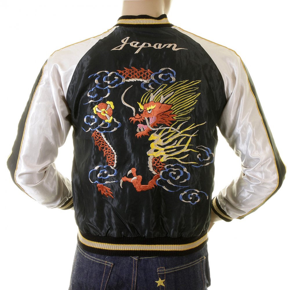 Black Body Ivory Sleeves Regular Fit Fully Reversible Suka Jacket with Hand Embroidered Tiger and Dragon TT12420