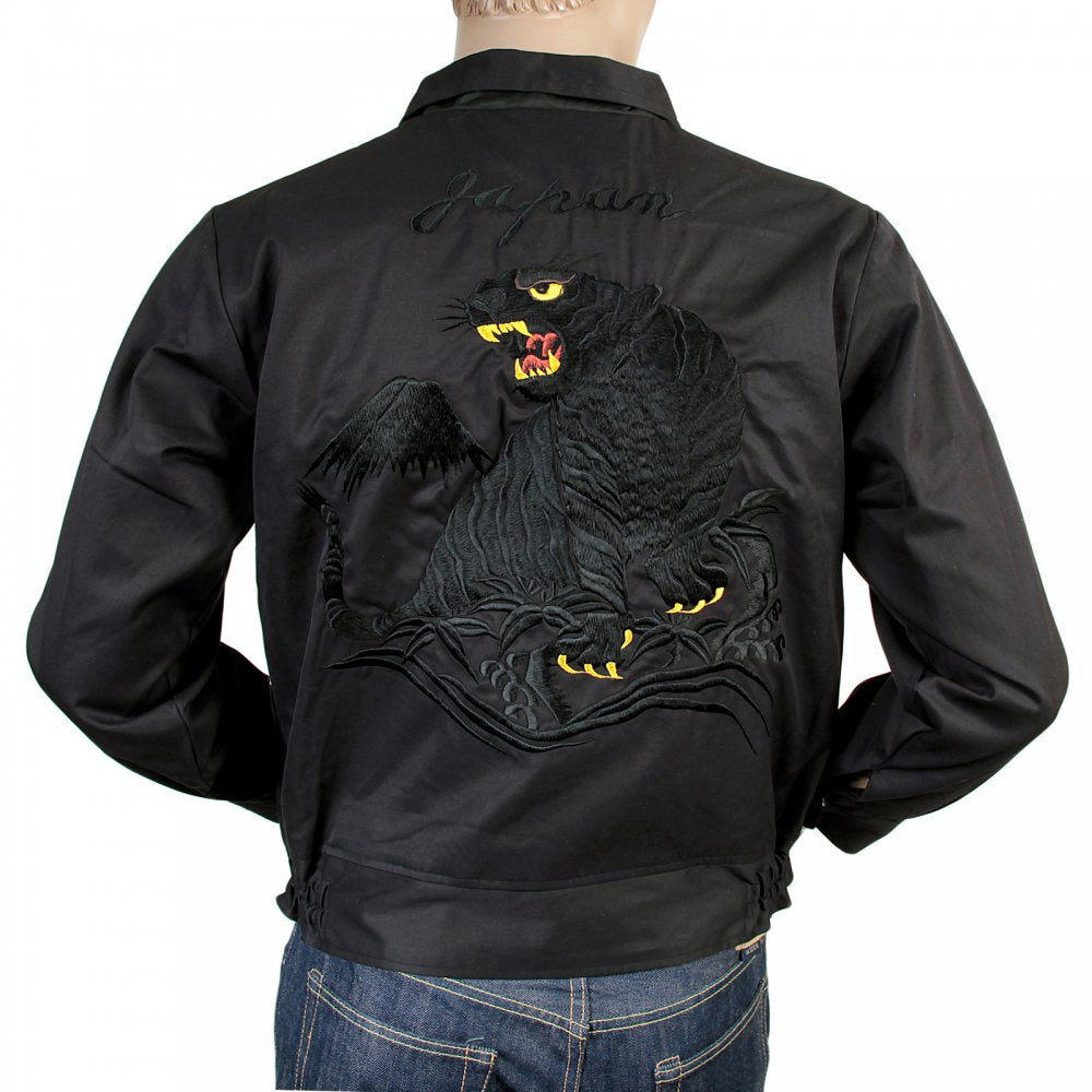 Black Regular Fit Cotton Twill Jacket with Embroidered Black Tiger TT13002