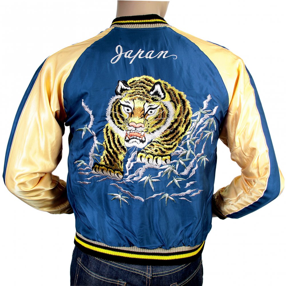 Royal Blue Body Gold Sleeves Regular Fit Fully Reversible Souvenir Suka Jacket with Hand Embroidered Tiger and Eagle TT13001