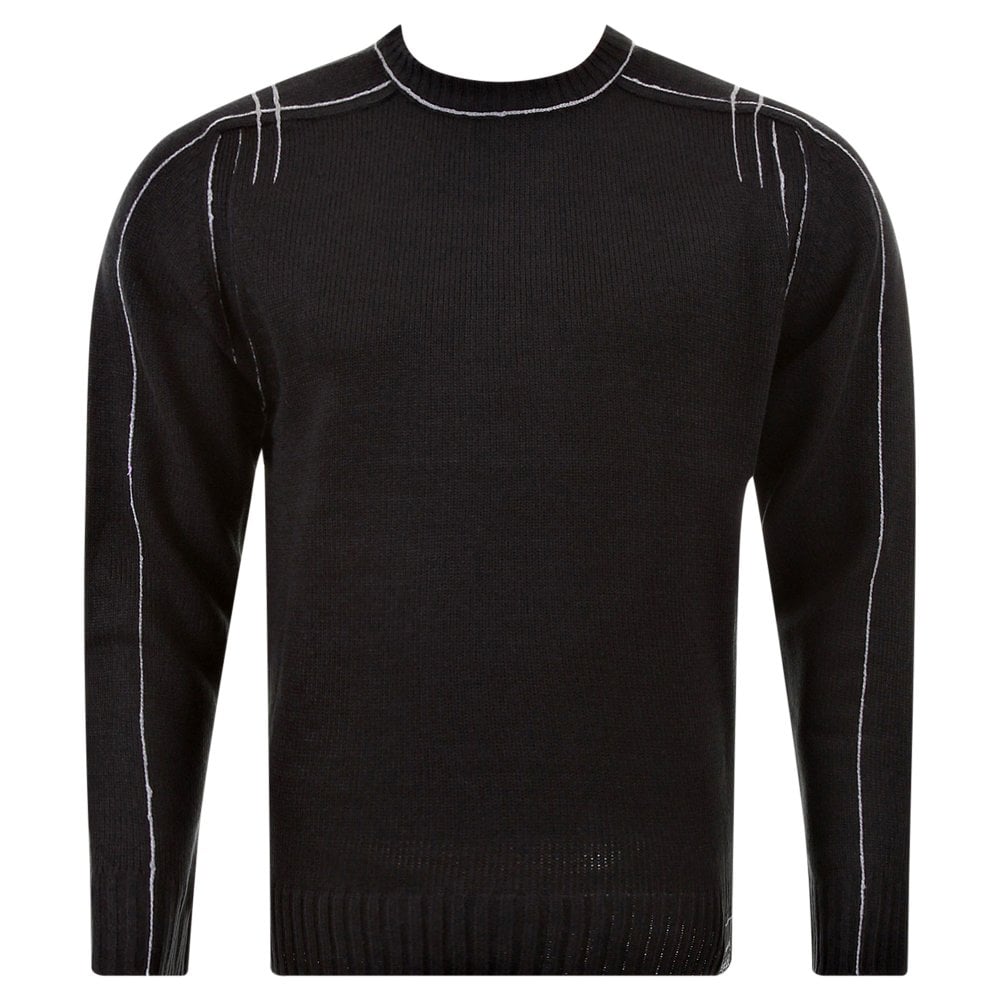 Black Crew Neck Long Sleeve Regular Fit Knitted Jumper with Grey Stitched Trim