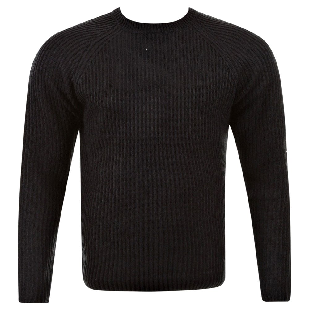Black Crew Neck Raglan Sleeve Regular Fit Knitted Jumper