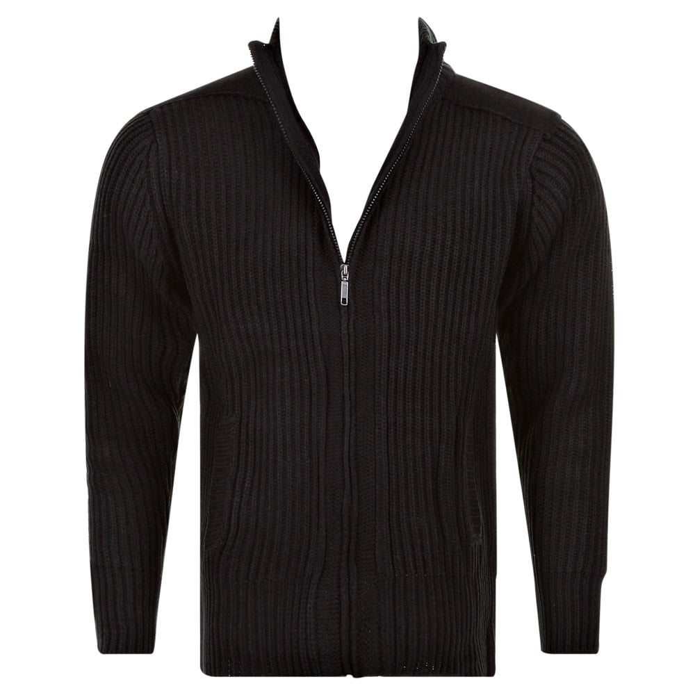 Black Long Sleeve Regular Fit Full Zipped Cardigan with Applique Shoulder Patch