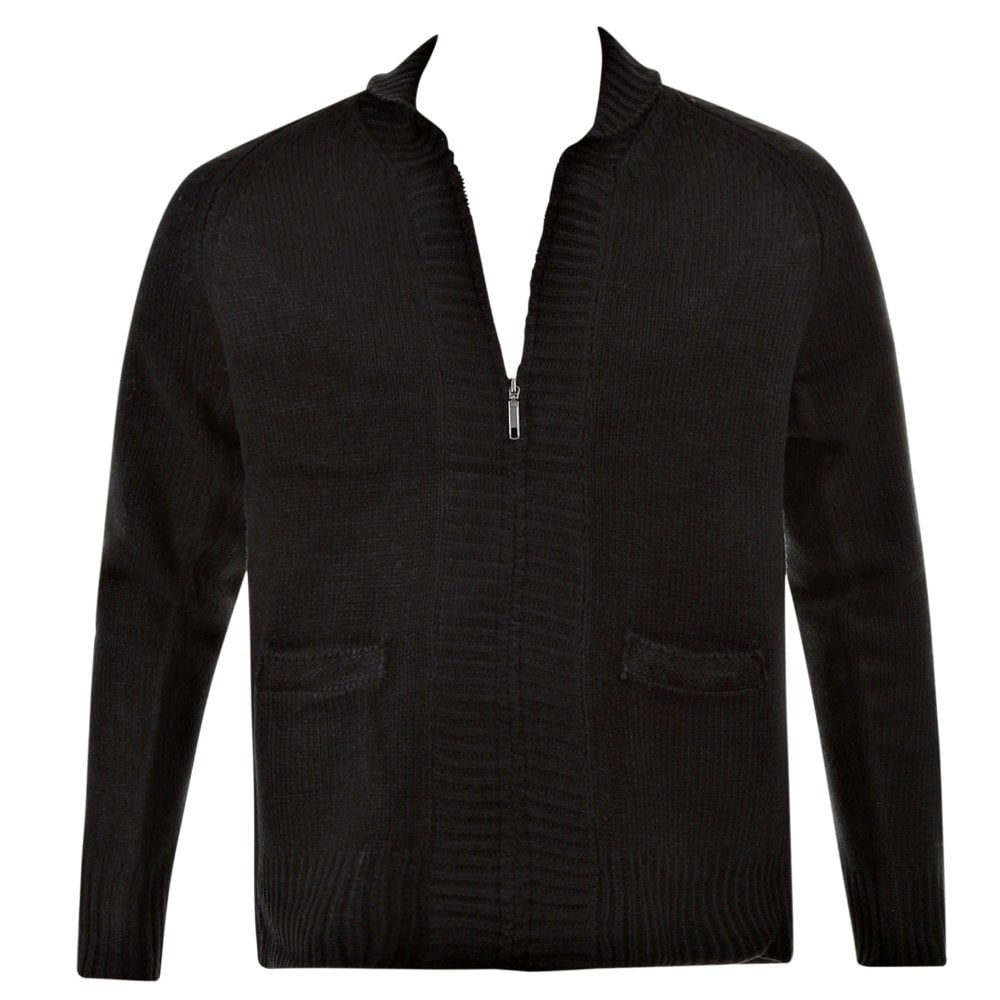 Black Shawl Collar Long Sleeve Regular Fit Zip Up Knitted Cardigan
