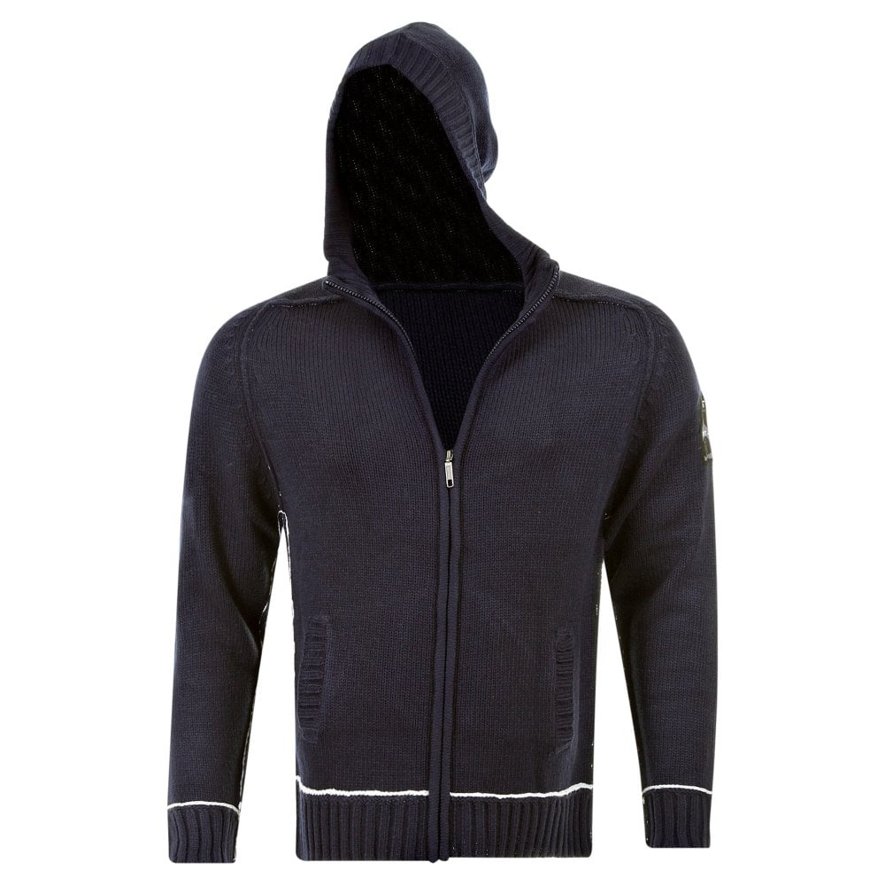 Knitted Navy Long Sleeve Regular Fit Zip-Up Hooded Cardigan with White Trim