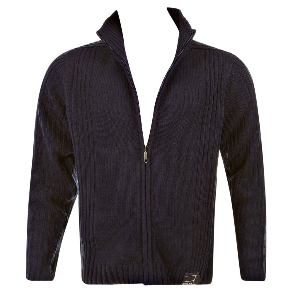 Navy Full Zip Regular Fit Long Sleeve Knitted Cardigan
