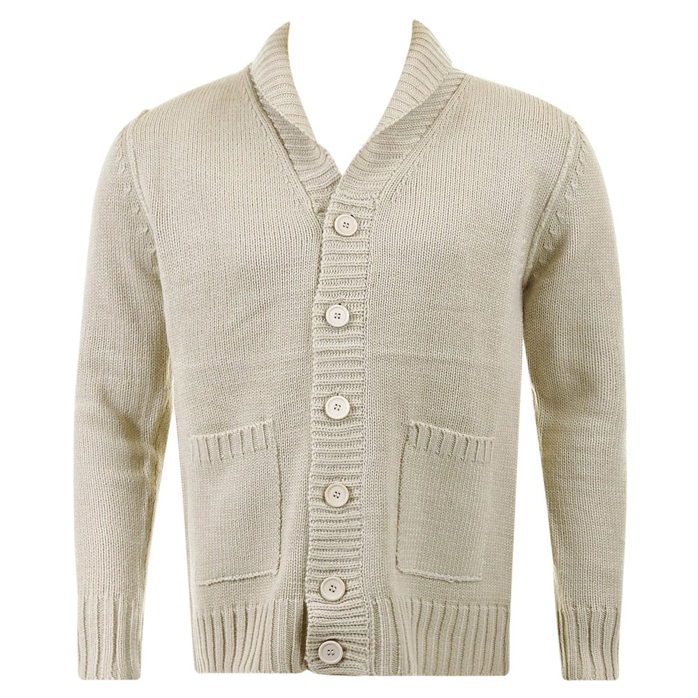 Regular Fit Beige Button up Shawl Collar Knitted Cardigan