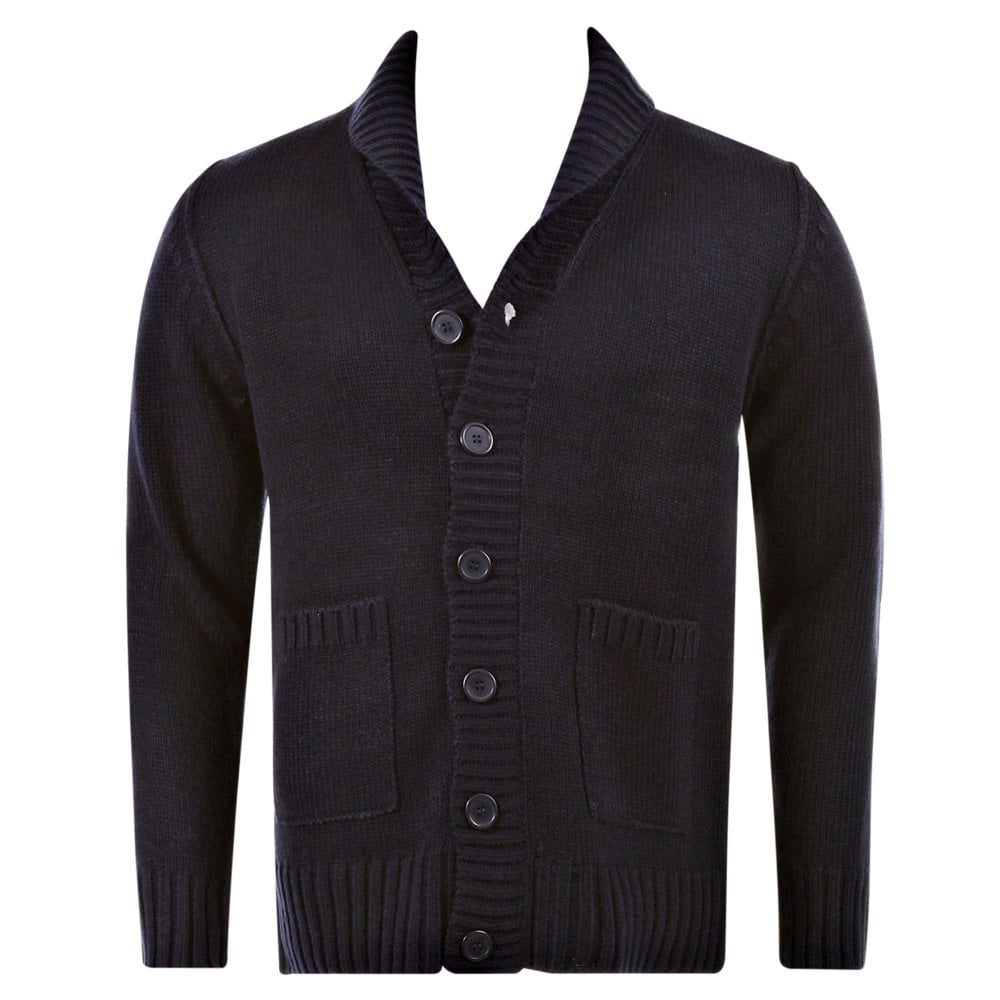 Regular Fit Navy Button up Shawl Collar Knitted Cardigan