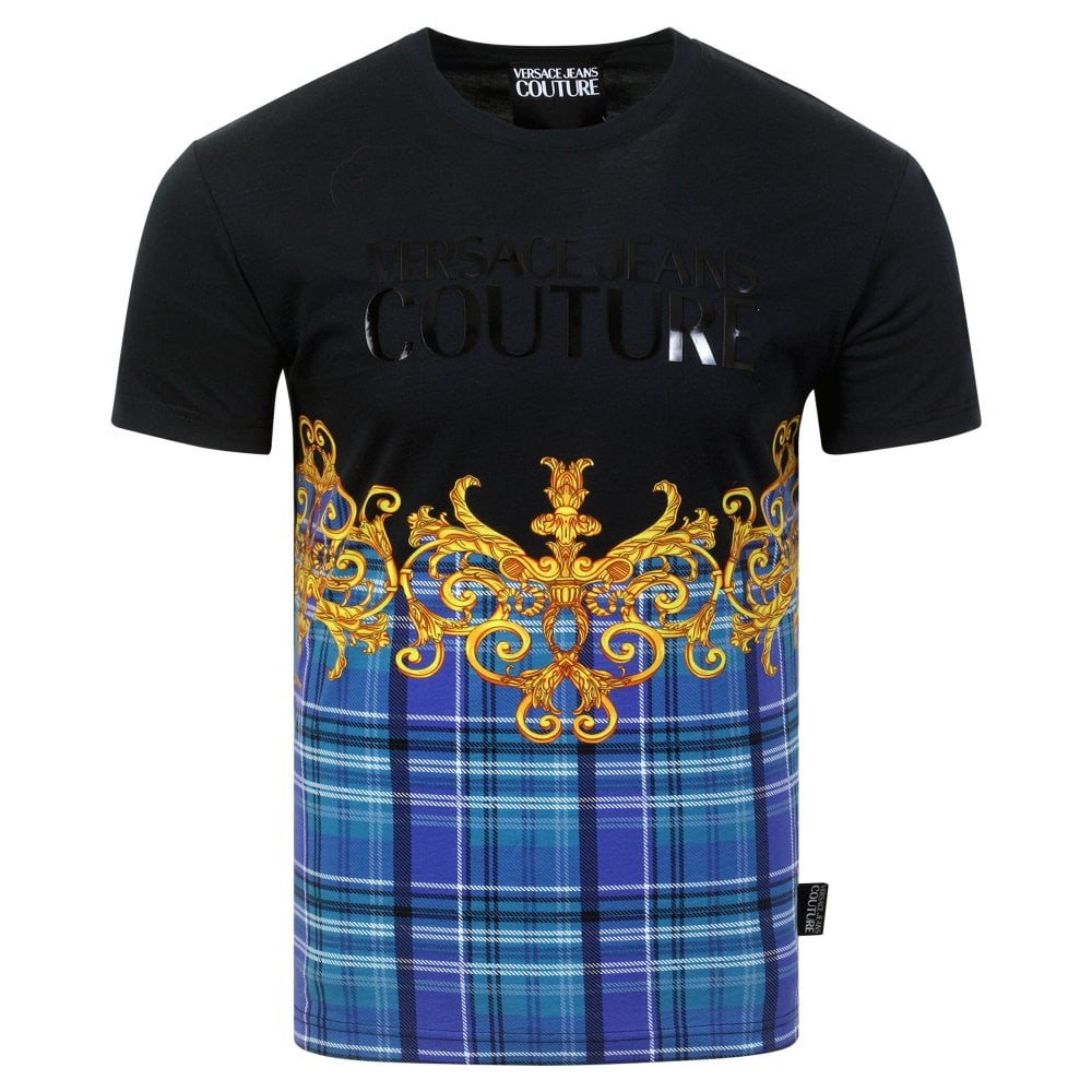 Versace Jeans Couture Mens Logo and Printed Short Sleeve Black T Shirt VJC9699