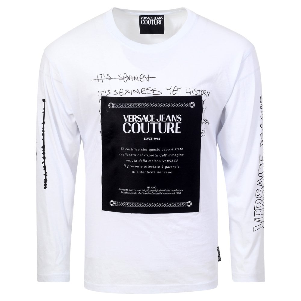 Versace Mens Logo Certificate Long Sleeve White T Shirt VJC9958