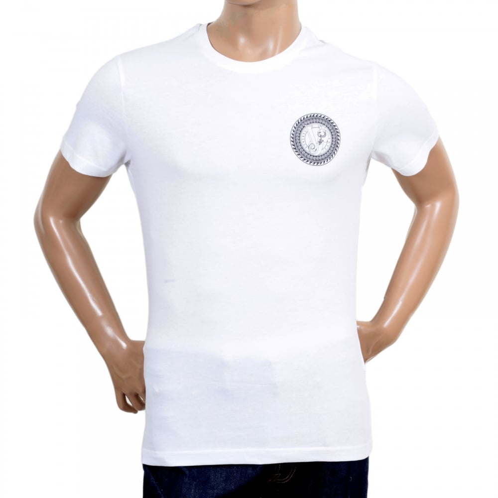 Short Sleeve Crew Neck Cotton Slimmer Fit White T Shirt with Black Logo Print on the Chest