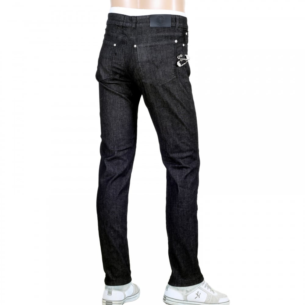 Black Slim Fit Low Waist Stretch Jeans with Silver Lion Head Studs and Removable Lion Head Safety Pins