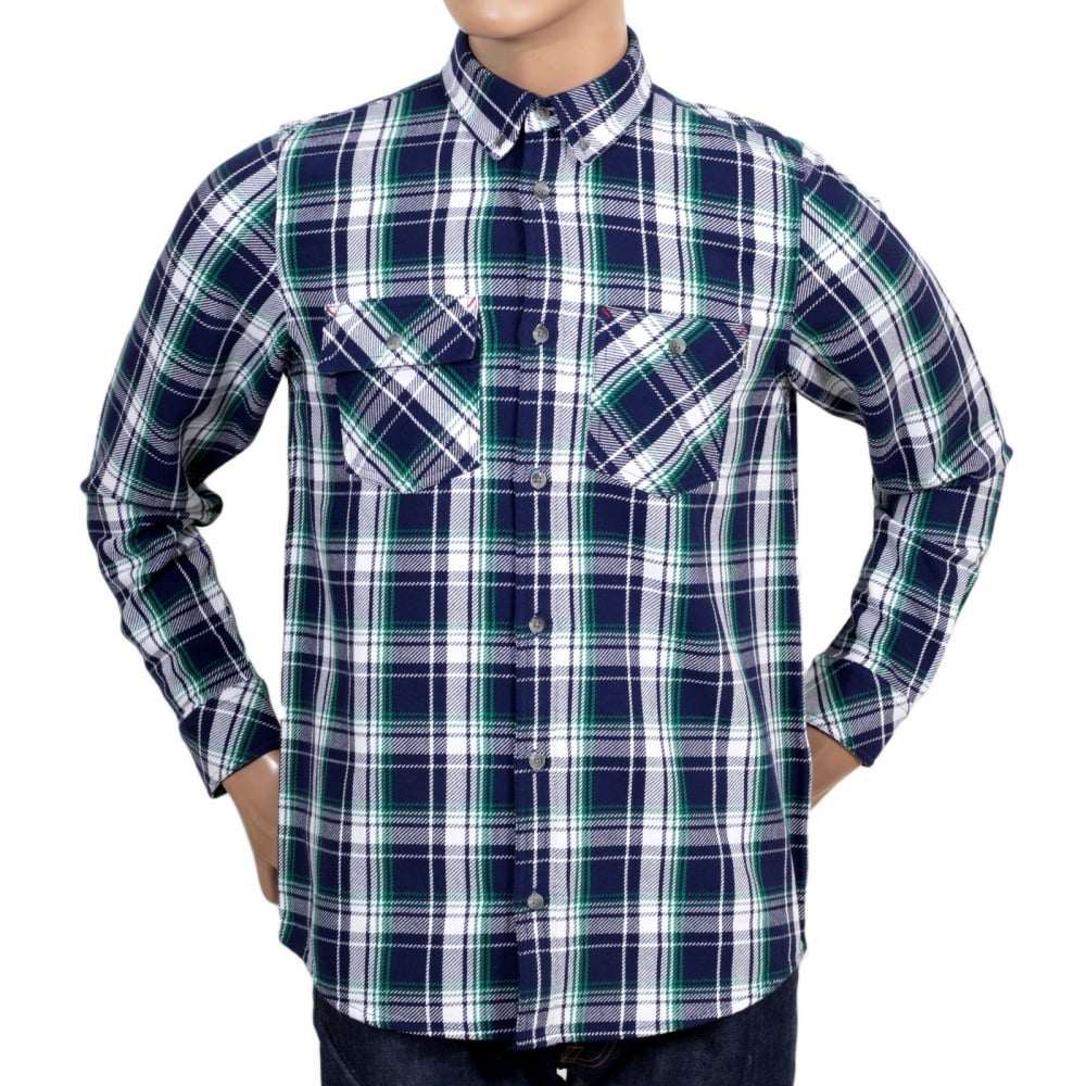 Long Sleeve Labor Blue Reynolds Checked Cotton Shirt with Soft Collar, 2 Chest Pockets and Pearlised Buttons