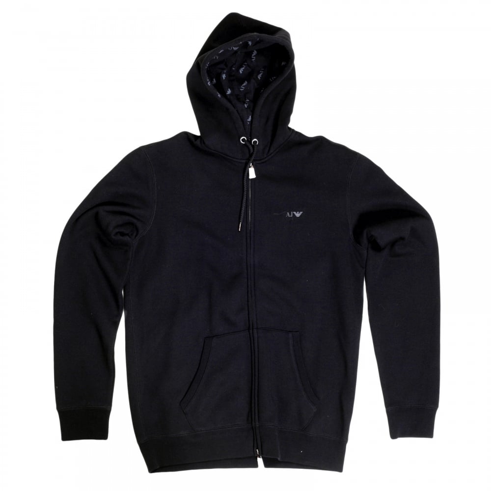 Armani Jeans Black Zipped Hooded Sweatshirt for Men with AJ Eagle Chest Logo AJM6461