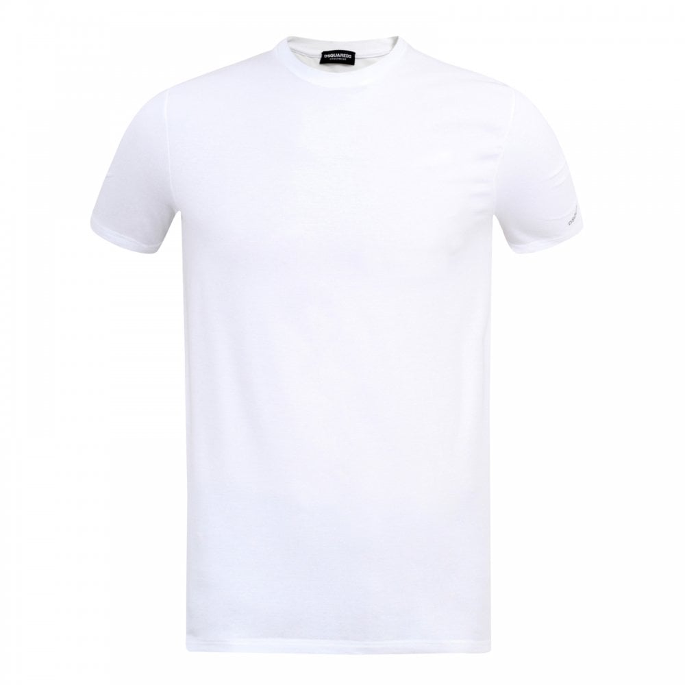 Dsquared2 Mens White Crew Neck Slim Fit Short Sleeve T Shirt with Small Grey Text Sleeve Logo Print